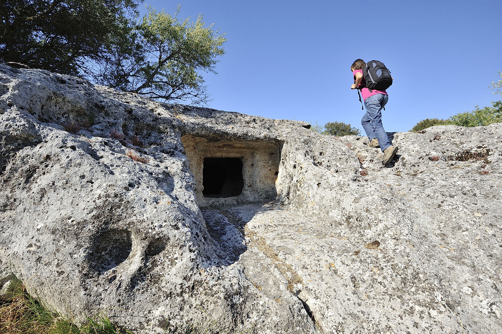 Nel corso dei secoli, la necropoli ha subito modifiche e ampliamenti. Alcune sepolture sono state adattate con nuove camere e decorazioni, soprattutto per accogliere individui di alto rango sociale. Un esempio significativo è la Tomba VIII, alla quale si accede attraverso un breve corridoio (dromos) sopraelevato che conduce a un vestibolo quadrangolare privo di soffitto. La cella principale presenta un soffitto scolpito a doppio spiovente con trave centrale e sette travetti per lato, una chiara rappresentazione di un’abitazione dell’epoca. Sulle pareti si possono osservare simboli legati al culto del toro, come le protomi taurine e le corna a fascia, elementi ricorrenti nelle civiltà neolitiche del Mediterraneo, dove il toro era considerato un simbolo di fertilità e forza.